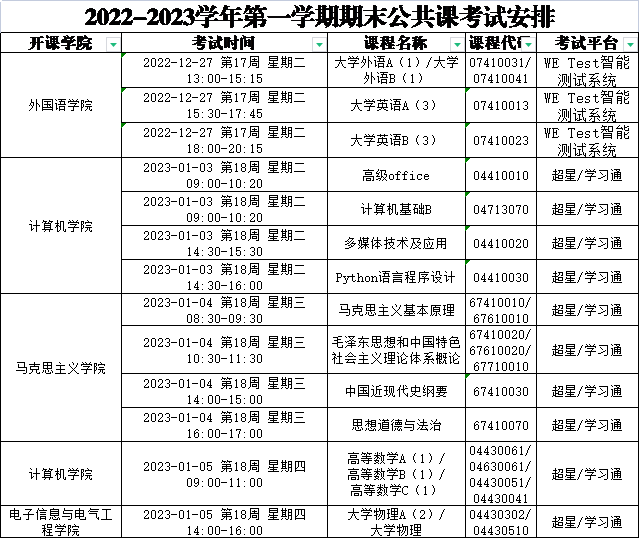 1.本学期专业课期末考试不集中时间进行,各教学单位根据教学进度,结合公共课考试时间合理安排。