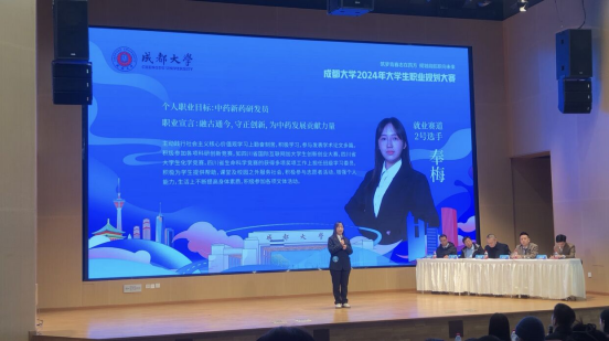 在决赛中,奉梅同学围绕求职意向目标、岗位认知、学习经历、项目经验、成长规划等方面进行了精彩展示,并最终取得“就业赛道”三等奖。本次大赛是由成都大学就业指导中心举办,电竞博彩平台