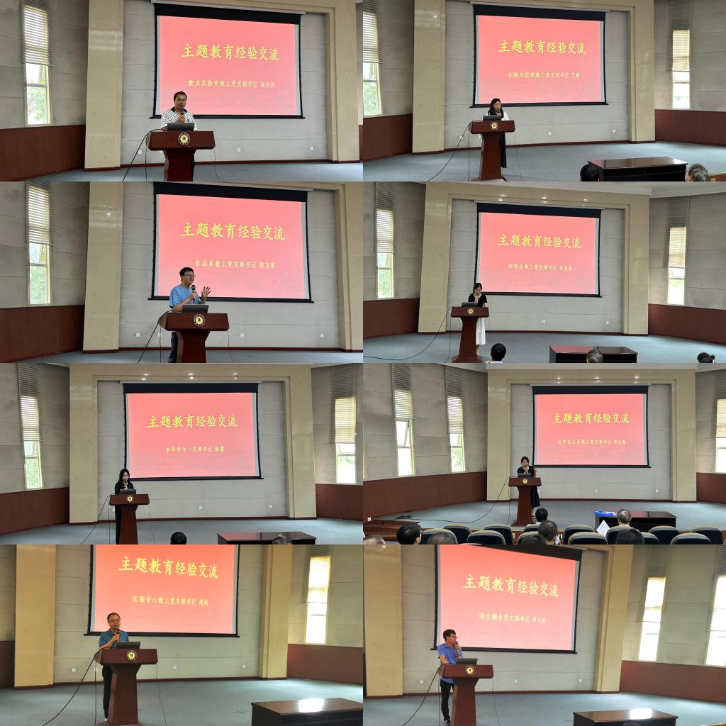支部书记向达兵、周闯、李红梅、陈卫军、万燕、李云成、游曌、奉美林8人分别分享主题教育开展经验。各支部书记结合各支部建设和业务工作实际,分享主题教育及支部党务工作开展情况。并开展自我批评,提出在接下来的主题教育中,一是要深入学习各项理论,学思想、强党性,积极发挥党员先锋模范作用;二是要将调查研究与整改相结合,发现了解工作中的问题并积极解决。
