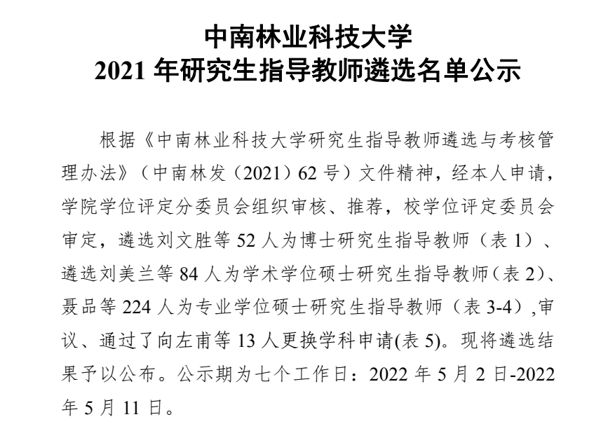 近日,根据《中南林业科技大学研究生指导教师遴选与考核管理办法》(中南林发(2021)62 号)文件精神,经本人申请,学校学位评定委员会审定,校内公示并公示无异议等程序,电竞博彩平台