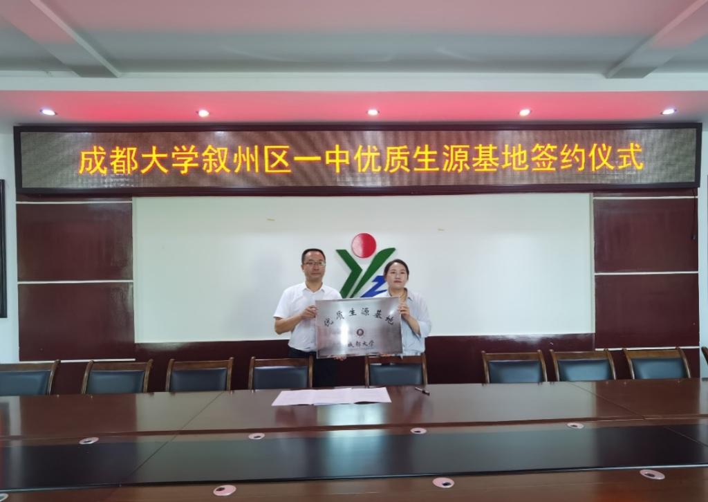 副院长、纪委书记王新惠带队组成招生宣传工作组,走进宜宾市叙州区第一中学、宜宾市一中进行招生宣传。并代表学校与宜宾市叙州区第一中学签订协议并授牌,建立“宜宾市叙州区第一中学优质生源基地”。宜宾市叙州区第一中学书记学校长韩宇驰代表学校签署仪式。