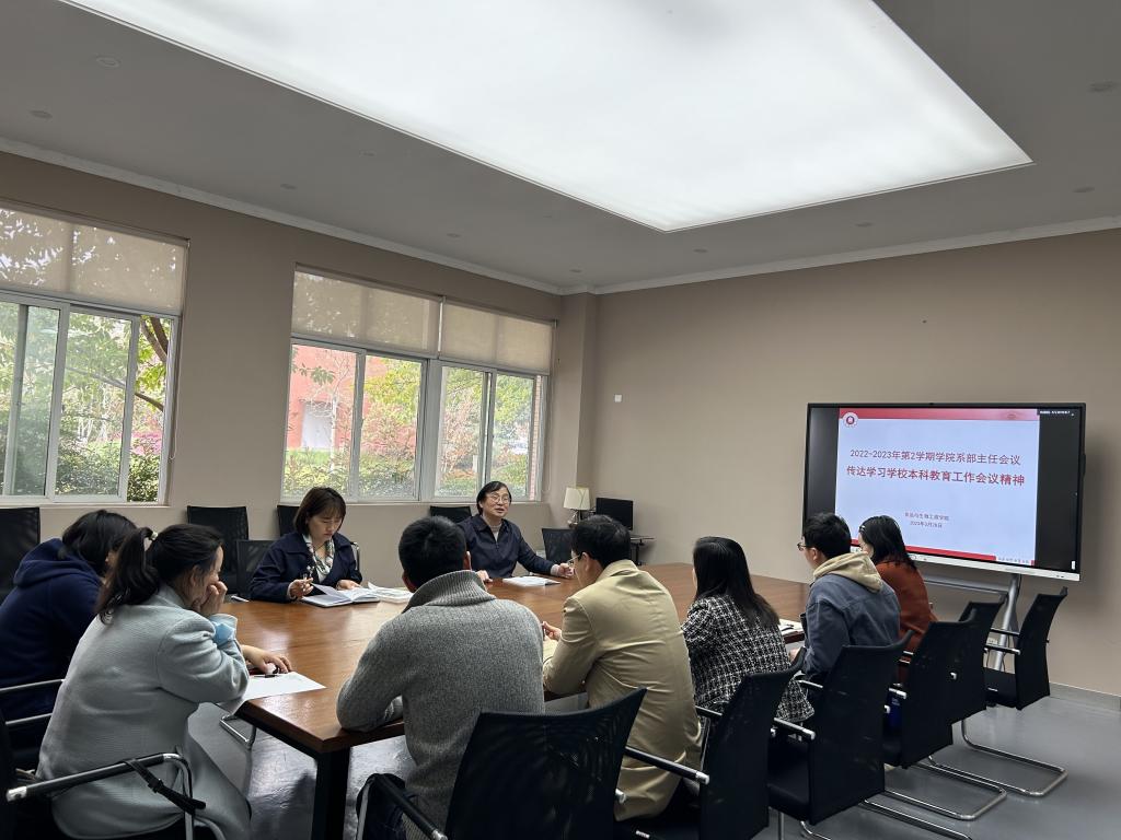 领导、系部主任、教务办工作人员以及骨干教师在9教202会议室,召开了一轮本科教育教学审核评估精神学习会议。