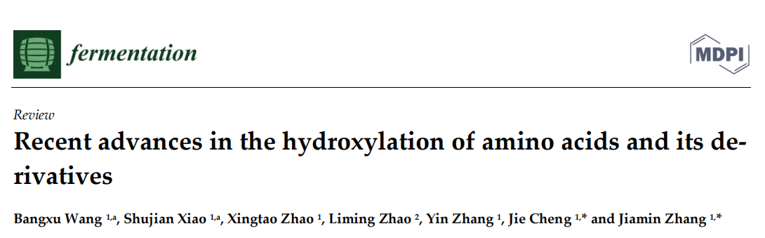 2023年3月,成都大学肉类加工四川省重点实验室王卫教授团队大二本科生,在国际期刊Fermentation(SCI二区,IF5.6)上发表题为“Recent advances in the hydroxylation of amino acids and its derivatives”的论文。成都大学肉类加工四川省重点实验室大二本科生王邦旭为论文第一作者,程杰副研究员和张佳敏教授为通讯作者。