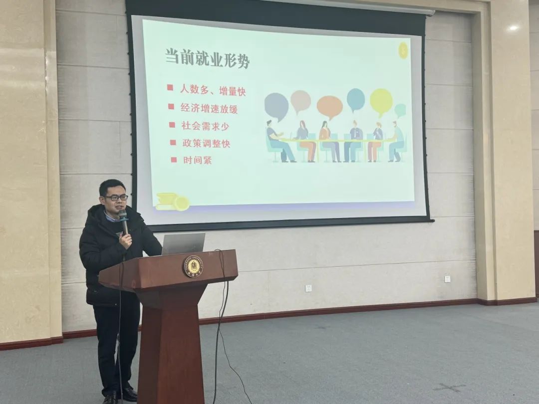 蒋桂高副书记从“当前就业形势”进行切入,介绍到当前毕业生人数多、增量快,加之政策调整、时间紧等情况提醒毕业生要抓住“春招”的机会。通过分析电竞投注平台