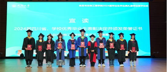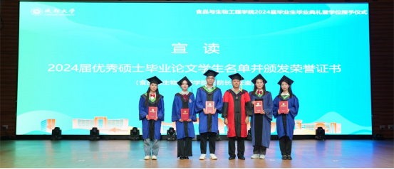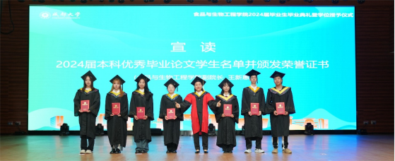 张崟副院长、王新惠副院长分别宣读学校2024届优秀硕士、本科毕业生论文学生名单并颁发荣誉证书。