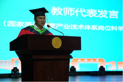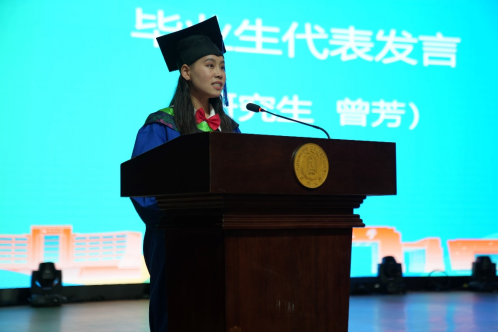 农艺与种业硕士研究生毕业生代表曾芳同学回顾了自己研究生三年在校园里的点点滴滴,所有在成都大学经历的学习、工作都是人生中宝贵财富,她将争取做一个怀揣梦想脚踏实地的人、做一个拥有智慧富有激情的人、做一个德才兼备敢挑重担的人,以青春之名赴时代之约,去向祖国需要我们的地方。
