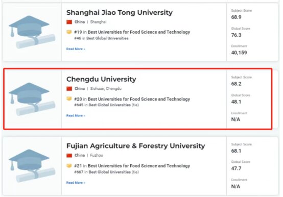 近日,U.S. News公布了2025-2026年度世界大学学科排名数据,本次食品科学与工程学科中国大陆共有77所高校入榜,我校食品科学与工程位列世界第20位,学科排名再创新高。